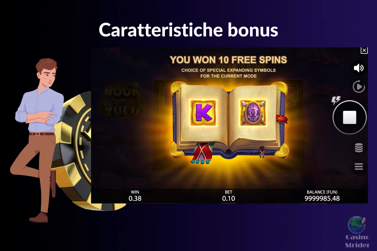 In base alle nostre ricerche, ecco tutti i bonus principali presenti nella videoslot Book of Zulu: